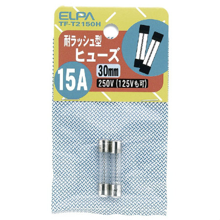[2本入]耐ラッシュ型30mmガラス管ヒューズ[250V・15A]TF-T2150H