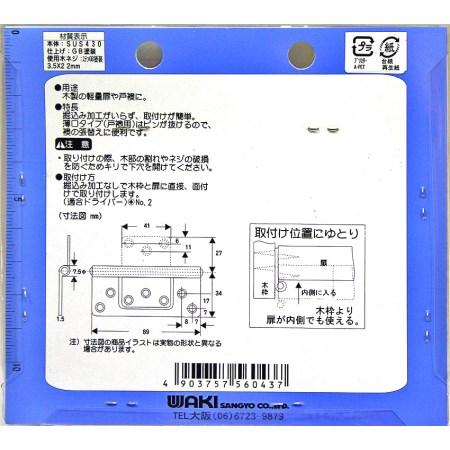 掘込み加工がいらず、取付けが簡単です。薄口タイプ(戸襖用)はピンが抜けるので、襖の張替えに便利です。