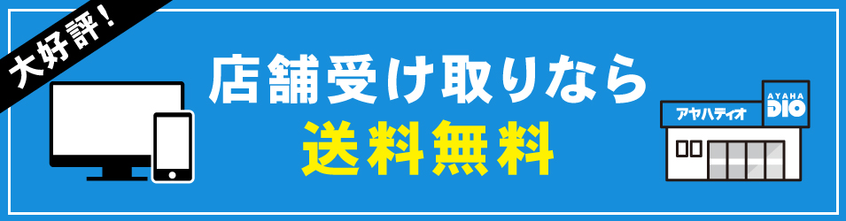 店舗受け取りサービスとは、ネットで注文した商品をお近くのアヤハディオの店舗で受け取りができるサービスです。