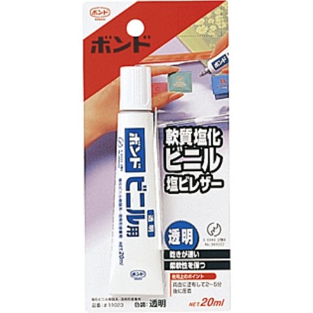 軟質塩化ビニル(フィルム・シート)同士の接着、軟質塩化ビニルと木・金属・布・紙などの接着、塩ビレザー製のバッグ・靴の補修、軟質塩化ビニル製の玩具やボール、テーブルクロス、傘、雨具の補修に