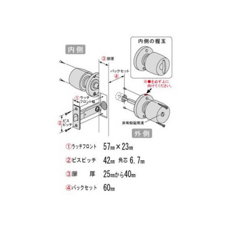 握玉タイプ 室内錠 間仕切錠 木目 バックセット60mm NP261-14ME