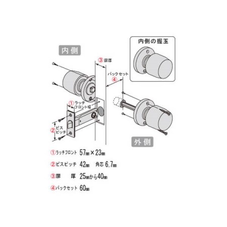 握玉タイプ 室内錠 空錠 バックセット60mm NP260