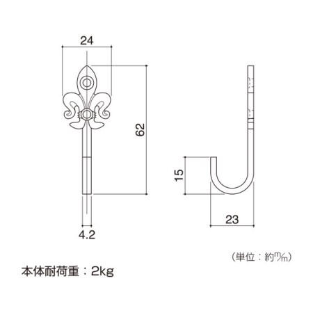 アンティーク調のフックです。創作家具、インテリアとしてご使用いただけます。