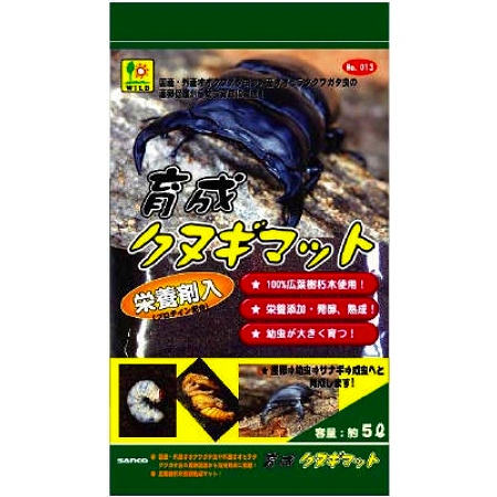 広葉樹材朽木を粉砕し栄養剤(プロテイン配合)を添加し、発酵熟成させ、外産、国産オオクワガタやオオヒラタクワガタ虫の産卵から幼虫育成用として作られた、本格的なクワガタ虫専用のマットです。
