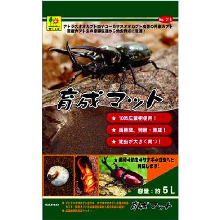 外産カブト虫(アトラス・コーカサス・ヘラクレス)から国産カブト虫まで、産卵・幼虫・サナギ・成虫への育成、羽化率をUPさせるため、天然広葉樹材に発酵菌を添加し、長時間、発酵熟成させたカブトムシ用マットです。