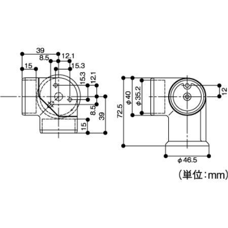 手すり棒を直角に曲げる部分に使用します。