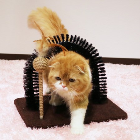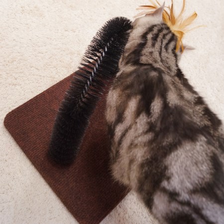 程よい硬さのナイロン製ブラシでスリスリしながら毛づくろいができる。