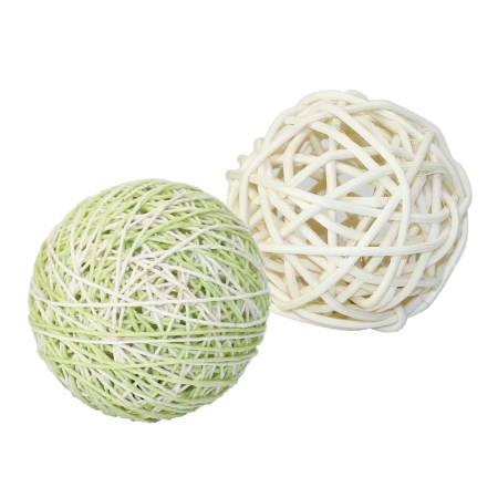 ラタン材、コットン糸を巻き上げて作った鈴入りボールのセット。