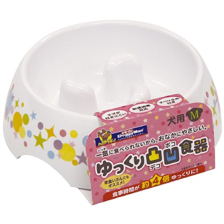 お食事にゲーム感覚、愛犬の早食いSTOP!一気に食べられない凸凹構造で、食事時間が約4倍ゆっくりに。(当社モニターテスト結果より)