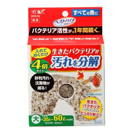 水槽に入れるだけで多孔質なブロックにバクテリアが活性、増殖。汚れを分解し透明感のある水を保つので、水換え・掃除の手間を減らします。
