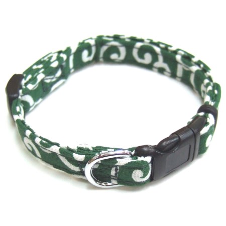 人気の唐草模様がかわいい!肌触りがいいコットン生地を使用した、人気のカラクサ模様のワンタッチ首輪。