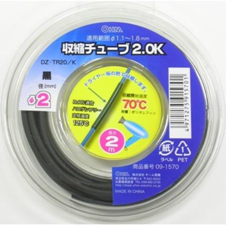 収縮チューブφ2.0mm 2m黒 DZ-TR20/K