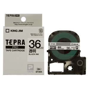 キングテプラテープ テプラ・SRシリーズ専用テープカートリッジ 36mm 透明ラベル黒文字 ST36K