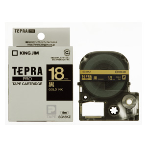 キングテプラテープ テプラ・SRシリーズ専用テープカートリッジ 18mm 黒ラベル金文字 SC18KZ