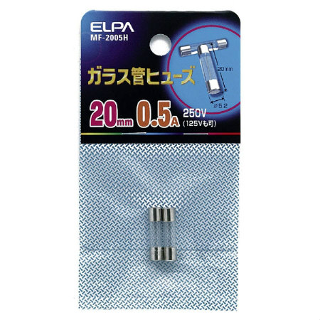[2本入]20mmガラス管ヒューズ[250V・0.5A]MF-2005H