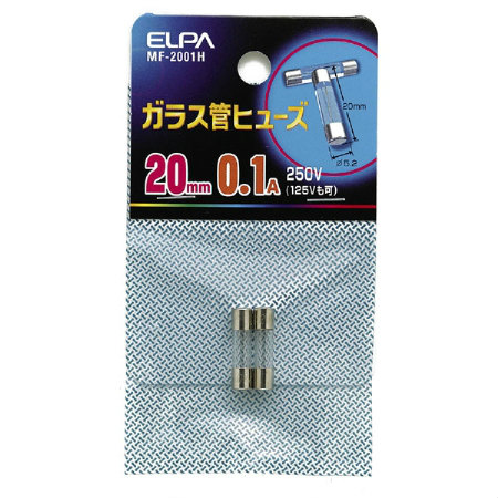 [2本入]20mmガラス管ヒューズ[250V・0.1A]MF-2001H