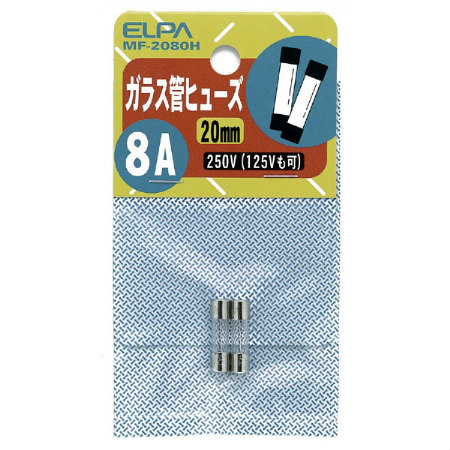 [2本入]20mmガラス管ヒューズ[250V・8A]MF-2080H