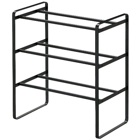 伸縮シューズラック フレーム 3段 ブラック
