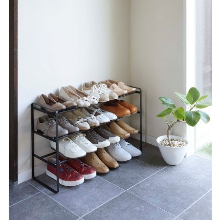 伸縮自在の3段シューズラック。