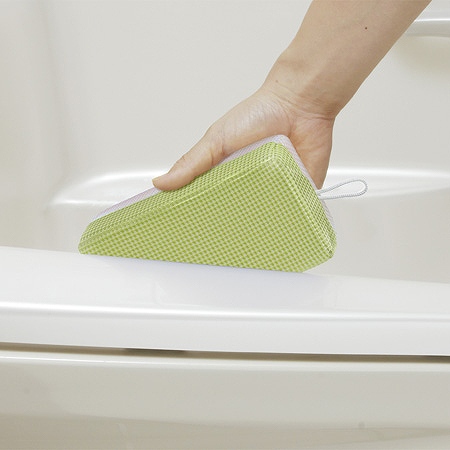 水をつけて、こするだけ洗剤不要のバスクリーナーです。マイクロファイバーのクロス面は、水だけで、汚れをしっかりこすり落とします。