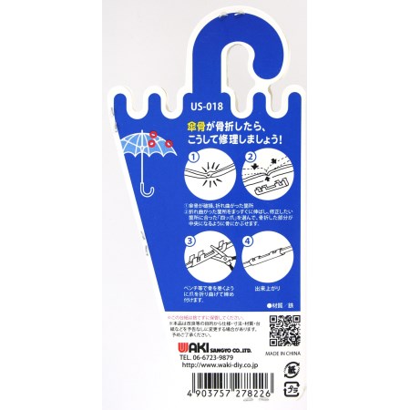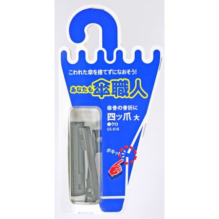 お気に入りの傘を捨てずに修理できます。折り曲げる爪が4箇所あり、傘の親骨(傘の布地が付いている一番外側の骨)の修理部品です。