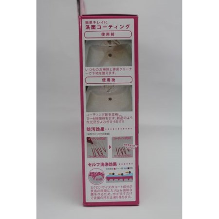 洗面台に合わせて独自に開発した専用クリーナーとハイブリッド系コーティングにより、陶器、ホーロー、人造大理石、プラスチックなどの洗面台にお使いいただけます。