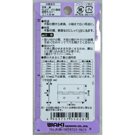 厚口カラー丁番 VE-028 51mm 白