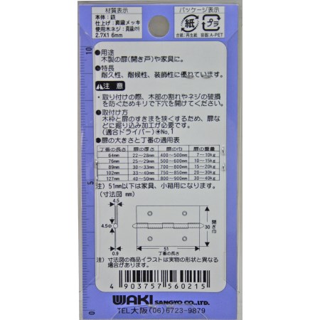 真鍮メッキロング丁番VF-021 51mm