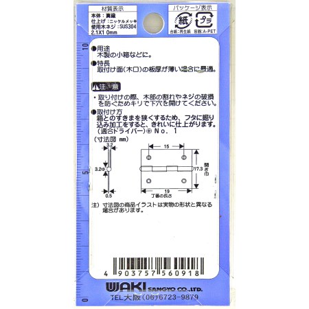 木製の小箱などに使用するインテリア丁番です。