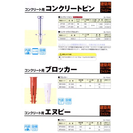 下穴やアンカーが不要のコンクリートピンを打ち込む際の専用工具です。