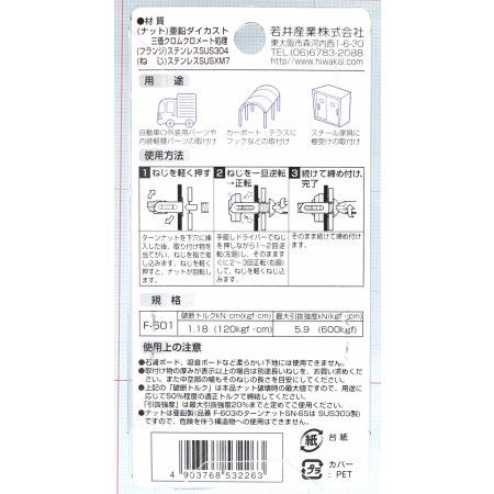ターンナットビス付 ワカイ F-601 TN5T