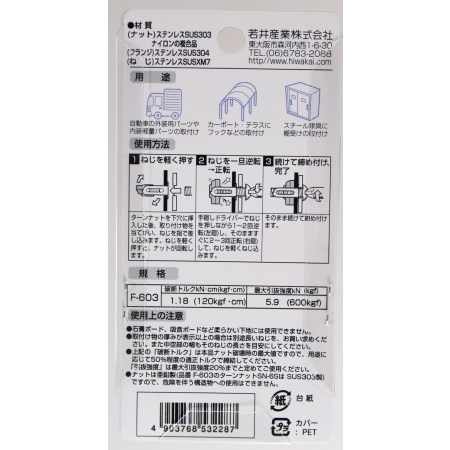 ターンナットビス付 ワカイ F-603 SN6S
