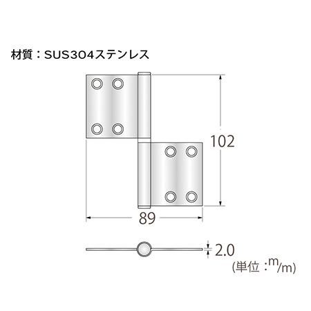 左右兼用旗蝶番 102mm×89mm ヘアーライン